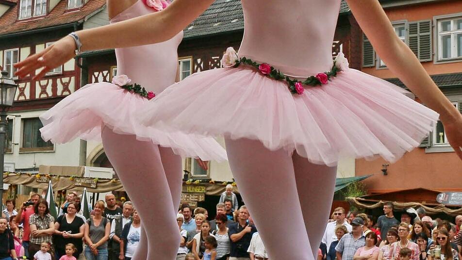 Die Gewandeten mischten sich schnell unters "Volk in Zivil" und feierten, bis der Heiler kam. Mit "We will rock you" wurde die Bühne am neugestalteten Platz in der Bahnhofstraße gerockt, romantische Songs mit Gitarren- und Kontrabassbegleitung erklangen in der Fußgängerzone. Die Rathausbühne bot währenddessen abwechslungsreiche Shows. Die jungen Tänzerinnen der SKK-Garde sangen "I will follow him" aus dem Film "Sister Act", schlüpften in Nonnen- und Mönchskostüme und rissen die Schaulustigen mit. Die Mädels der Ballettschule Garus entzückten in rosa Tutus mit Rosenbögen.