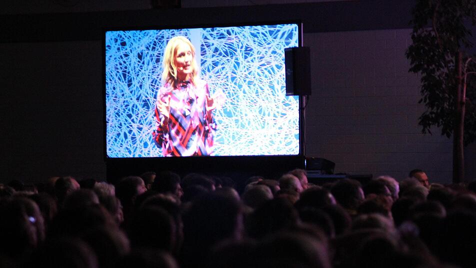 Als sich die Türen zum Foyer schlossen, ging es in der Stadthalle los. "Gott mit dir, du Land der Bayern" kam über die Lautsprecher und in einer Art Hymne-4.0.-Version. Laut, mit Beat unterlegt und begleitet von auf Leinwand projizierten Heimatbildern voll bayerischem Idyll. Damit war klar, aus welcher Ecke heraus die Welt und die in ihr stattfindenden Vorgänge von Monika Gruber in den nächsten zwei Stunden betrachtet würden. Es war das Konzept, das bei der Kabarettistin immer greift und mit welchem die 46-Jährige Scharen anlockt. Ihr Programm "Wahnsinn!" war ausverkauft und am Ende gab es stehende Ovationen.