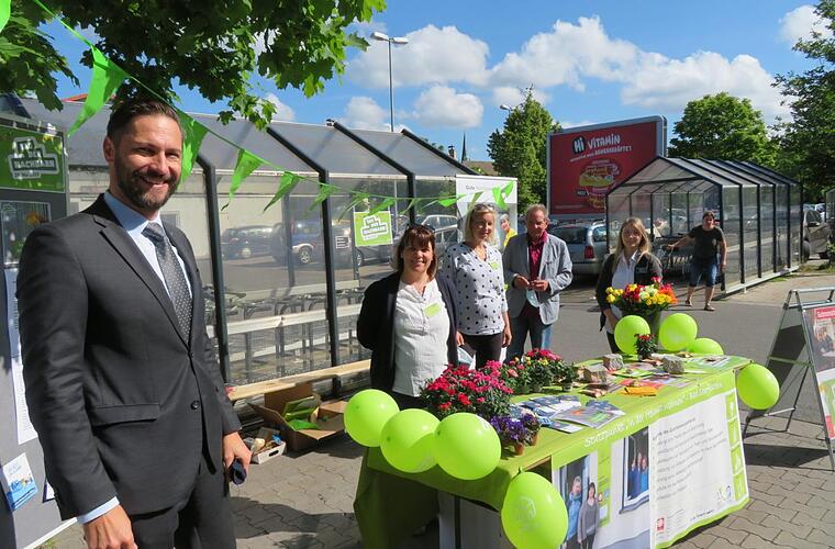 Walter Mackert, Seniorenbeauftragter der Stadt, ist ebenfalls vor Ort. Auch er schenkte den Passanten Blumen, reichte ihnen Naschtütchen und Karten, die sie ihren Lieblingsnachbarn in den Briefkasten stecken oder in die Zeitungsrolle legen können: "In der Seniorenarbeit ist Nachbarschaftshilfe mit das Wichtigste", sagt Mackert.