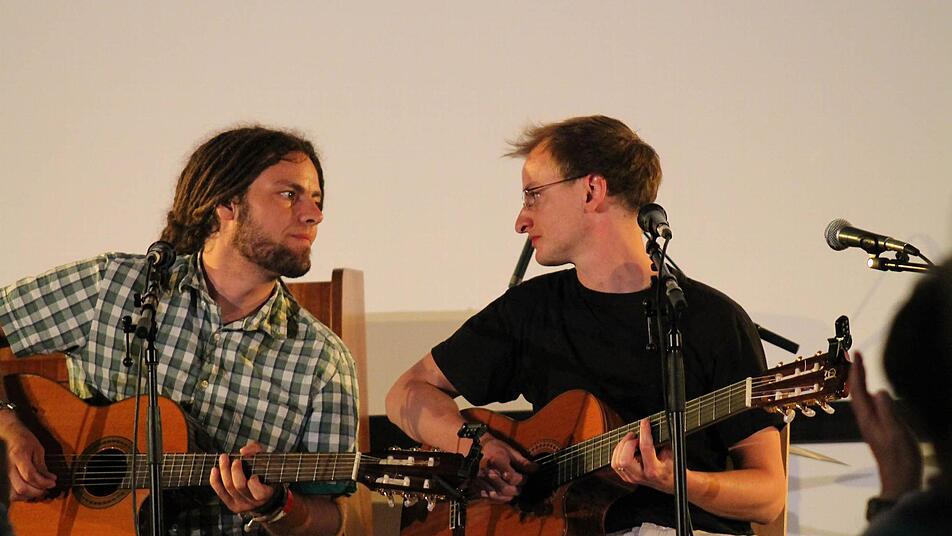 Simon & JanDen sehr kurzweiligen zweieinhalbstündigen Konzertabend krönte das Duo Simon & Jan. Die beiden lernten sich beim Lehramtsstudium kennen und begrüßten das Publikum mit den Worten: "Was für ein Hexenkessel, mein Gott, Hanns-Seidel-Stiftung hier." Zynische Balladen, die den Zuhörer aufbauen und wieder fallen lassen.