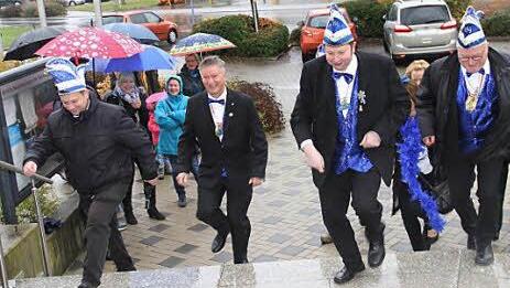 Ein kurzes Ringen um einen symbolischen Rathausschlüssel und die Narren hatten für eine Stunde die Oberhand im Rathaus. Da hatte selbst ein als Eisbär verkleideter Bürgermeister Bernhard Storath keine Chance.