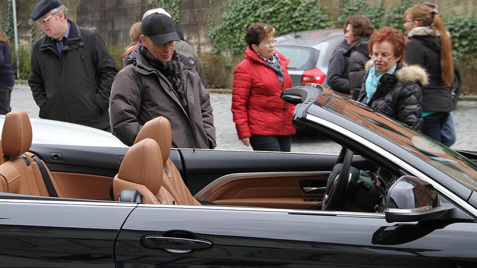 Auch Erwachsene entdeckten gestern den ein oder anderen fahrbaren Untersatz, der die Augen zum Strahlen brachte. Wie beispielsweise ein BMW-Cabrio 420D in Schwarzmetallic, das sicher eines der meistbestaunten Fahrzeuge war. "Den meisten Leuten gefällt das Cabrio, weniger aber der Preis", erzählt Verkaufsberater Andreas Backert schmunzelnd.