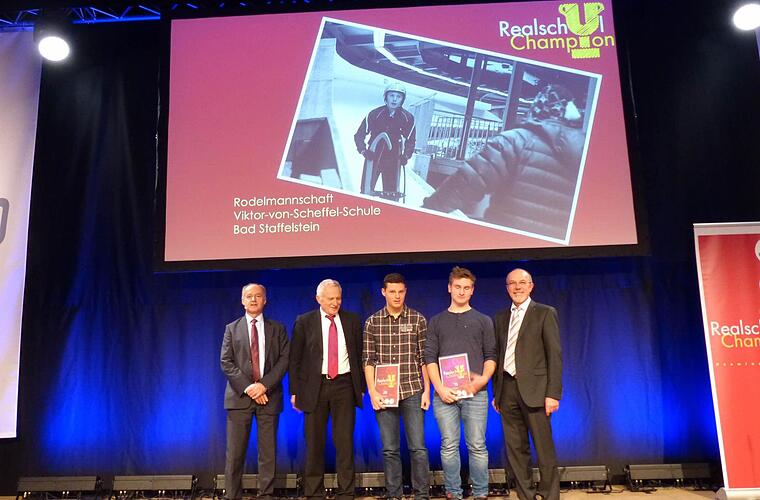 In Anbetracht der erschwerten Trainingsbedingungen ein herausragendes Ergebnis, so fand die Jury des Wettbewerbs "Realschulchampion" und zeichnete die Rodelmannschaft der Bad Staffelsteiner Realschule mit dem "Sonderpreis Sport" aus. Schon 2012 siegte die Schule bei diesem Wettbewerb in der Kategorie Sport, im letzten Jahr erzielte die Viktor-von-Scheffel-Schule den 3. Platz in der Kategorie "Soziales" mit ihrem Projekt "Jugend im Pflegeheim".