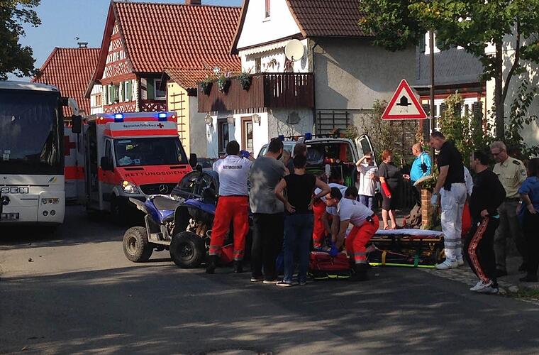 Bei einem Unfall in Horsdorf bei Bad Staffelstein (Landkreis Lichtenfels) ist am frühen Freitagnachmittag ein Quadfahrer schwer verletzt worden. Der Mann war mit einem Pkw zusammengestoßen.