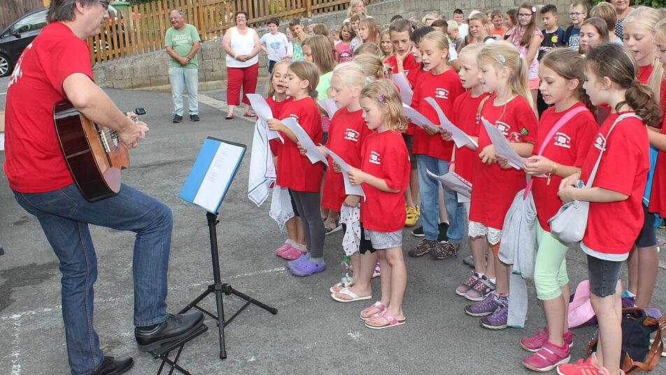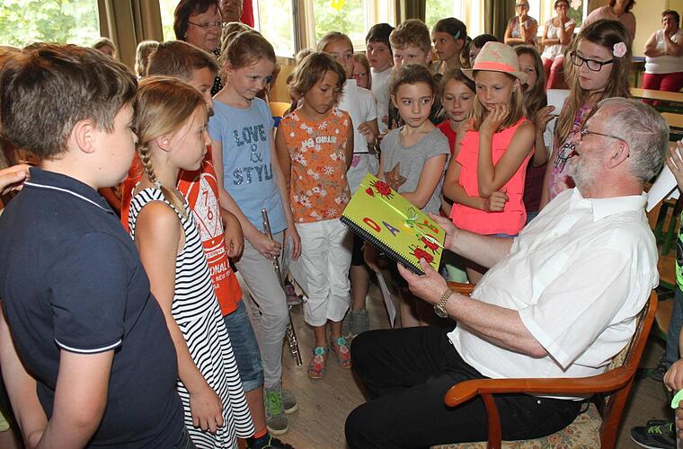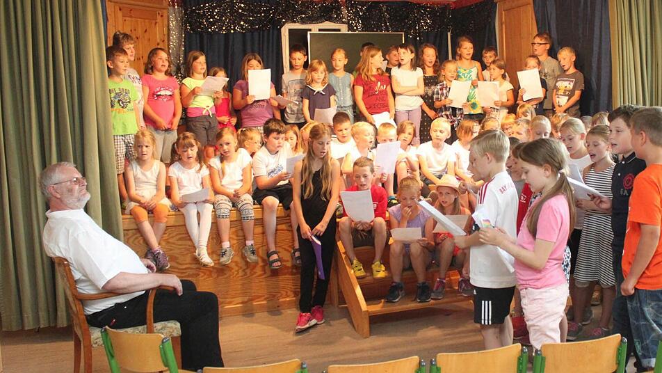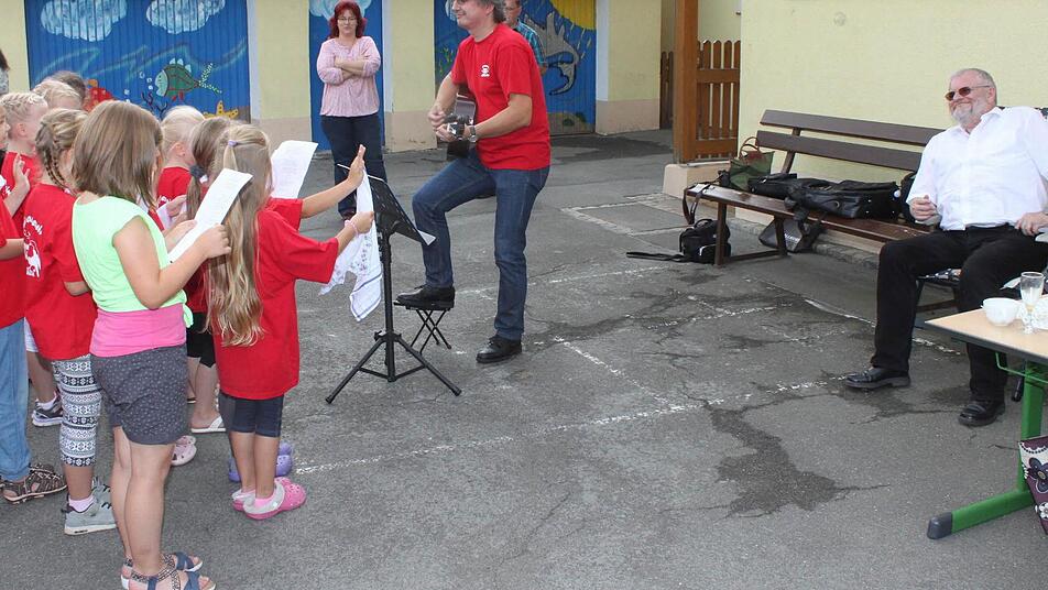Bei der Verabschiedung sang der Kinderchor Roth-Kehlchen im Pausenhof ein Lied aus der Feder von Bianca Geiger: "Heut steh´n wir vor dir, denn es ist soweit - leider endet deine schöne Lehrerzeit. Spannend war es immer, lustig und famos. In Roth an deiner Schule, da war echt was los." Danach ging die Abschiedsveranstaltung im Klassenzimmer weiter. Alle Schulklassen hatten mit den Lehrkräften verschiedene Stücke einstudiert.