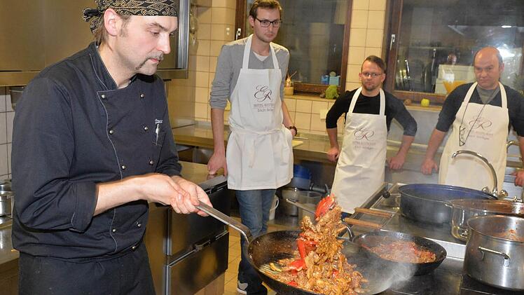 Der Staffelsteiner Koch Rico Pfitzner gibt Kochkurse für Männer. Einen Unterschied zu Frauen-Kochkursen gibt es nicht. Höchstens vielleicht diesen: Ähnlich wie die Mädels in der Damensauna wollen die Jungs eben auch mal unter sich sein.