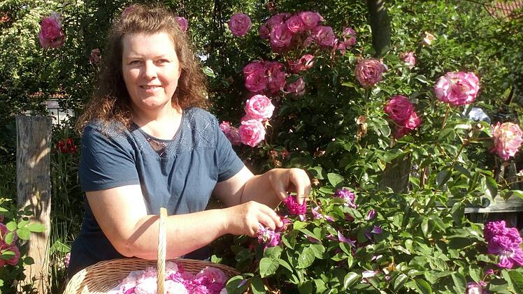 Die beste Zeit, um Rosen zu ernten, ist früh gegen 10 Uhr, findet Kerstin Schmidt. Wenn der Morgentau gerade abgetrocknet ist, soll das Aroma besonders intensiv sein. Dann geht sie mit Korb und Schere in ihren Garten und schreitet zur Tat. Wer den köstlichen Duft der Rosen im Glas konservieren möchte, muss zu Opfern bereit sein. Denn es sind die schönsten Blüten gefragt, nicht etwa halb verwelkte, die beim nächsten Windstoß sowieso dahin wären. Für Kerstin Schmidt ist das kein Problem, sie kann in ihrem Garten daheim in Redwitz aus dem Vollen schöpfen. Mehrere große, alte Rosensträucher stehen da, von der bevorzugten Art der "Damaszener", die besonders intensiv duftet. Und nicht nur das: Auch gesundheitsfördernde Eigenschaften werden ihr nachgesagt; entzündungshemmend, krampflösend und fiebersenkend soll sie wirken, ihr Duft entspannend. 2013 war sie deshalb zur Heilpflanze des Jahres gekürt worden.