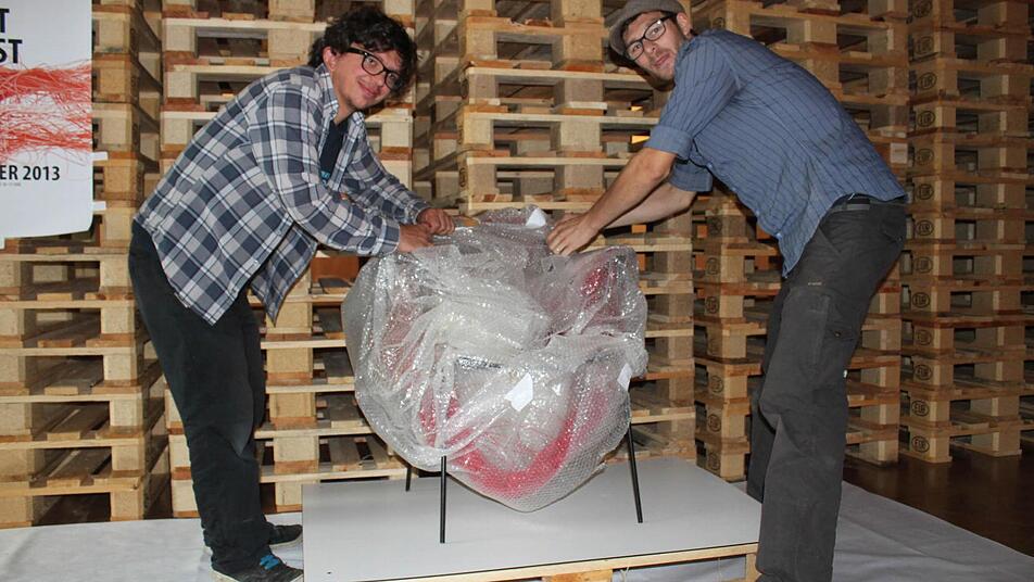 Aber wie bringt man solche zur Geltung? Diller und Fuchs haben zwar schon eine gewisse Erfahrung in der Gestaltung von Ausstellungen sammeln dürfen, aber in Lichtenfels sei das "ein Schritt hinaus aus der Studienwelt". Kein bisschen theoretisch packen die beiden Männer an, wenn es gilt, Paletten zu stemmen, Requisiten zu besorgen, oder bis 22.30 Uhr telefonisch erreichbar zu sein. Um diese Uhrzeit notierte Fuchs den bislang zum spätesten Zeitpunkt bei ihm eingehenden Anruf.