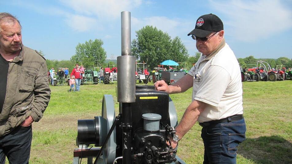 Was da aus den fränkischen Scheunen rausgekramt worden war, war eine Augenweide. Andreas Porzner aus Zapfendorf hatte einen Deutz Verdampfermotor dabei. Ursprünglich war dieser Standmotor in einem Steinbruch in Wertheim/Unterfranken eingesetzt worden. Dort hatte er vollbeladene Loren den Berg hochgezogen. Andreas Porzner ist fasziniert: "Man kann hier noch die Technik verfolgen, schauen, wie genau der Motor läuft." 2005 hatte er ihn erworben. 11 PS bei 1500 Umdrehungen pro Minute leistet der Deutz. Mittlerweile ist er 80 Jahre alt, "und läuft wie ein Jungspund", wie sein Eigentümer findet. "Das ist deutsche Wertarbeit."