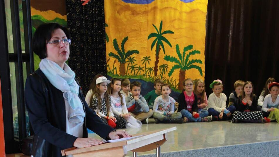 Die Musikgruppe der Schule intonierte unter anderem die "Ode an die Freude". Rührend war der Abschied von Roswitha Fischers letzter Klasse 6a, die ihrer scheidenden Klassenlehrerin Rosen überreichte. "Jetzt ist die Zeit, um danke zu sagen", rappten die AG Schulspiel und die Klasse 3a. Und spätestens beim abschließenden Lied "What a wonderful world" blieb kaum ein Auge trocken.