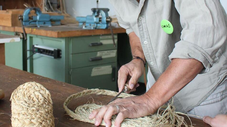 Trockene, warme Füße sind eine wichtige Voraussetzung, um sich wohl zu fühlen. Wer einmal Schuhe aus Bast oder Stroh getragen, kann sich bestimmt noch an dieses angenehme Gefühl erinnern. Wie bequem sie sind, ist freilich von der Form und Machart abhängig. Aber kalte Füße dürfte man darin nicht haben. Ötzi, der Mann aus der Jungsteinzeit, trug übrigens mit Heu gefüllte Schuhe, die mit einem Geflecht aus Grasschnüren zusammengehalten wurden. Je nach dem, wer sich wo ans Werk gemacht hat, wurden Bast, Stroh, Binsen, Schilf oder bestimmte Gräser, die in der Nähe wuchsen, verwendet, um nützliche Alltagsgegenstände - oder eben auch Schuhe - herzustellen. Im Mittelmeerraum und speziell in Spanien dient das Esparto- oder Halfagras als traditionelles Flechtmaterial. Carlos Fontales, der sich intensiv mit der Erkundung und Weitergabe typischer Flechttechniken seines Heimatlandes beschäftigt, ist aufgefallen, dass das Interesse aus anderen europäischen Ländern daran in den letzten Jahren gestiegen ist. Die Einladung zur Sommerakademie nach Lichtenfels hatte er deshalb gerne angenommen.