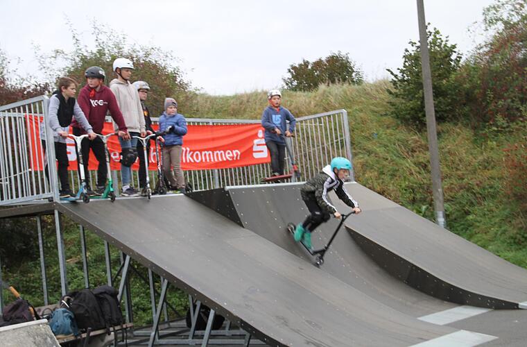 Jakob und Lilly sind mit ihrem Opa zur Anlage gekommen. Lilly fährt seit einem Jahr Scooter, ihr Bruder Jakob ein halbes Jahr länger. Ob es ihnen Spaß macht? Die beiden nicken - und schon sind sie wieder auf der Anlage! Man sich einig, dass es landkreisweit wohl keine vergleichbare Anlage geben dürfte.