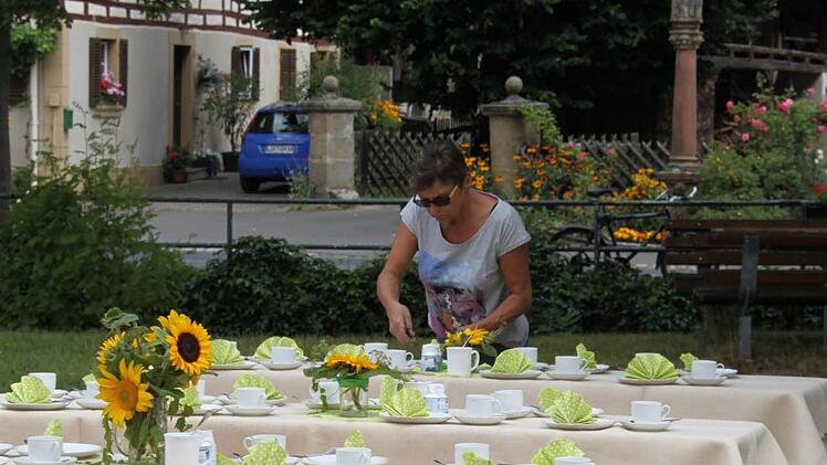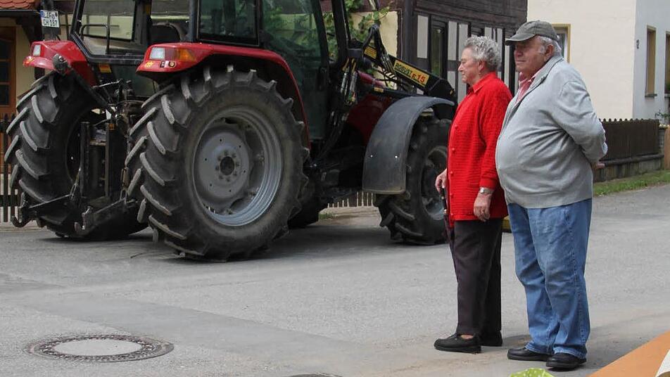 Ausdrücklich schloss er sich seinem Vorredner Dierauf an, der die Meinung vertrat, man werde im Dorf nie endgültig fertig sein und der auch den jungen Leuten Mut zu Veränderung wünschte. Der muntere Fortgang des dörflichen Lebens zeigte sich schon, während die "Nothelferkapelle" noch "Ein schöner Tag" intonierte. Da ratterte ein Traktor vorbei, krähte ein Hahn, spielten Kinder. Vor der Kulisse des Alten Schulhauses blieb man noch zusammen sitzen, um das gemeinsam Geschaffene zu feiern.