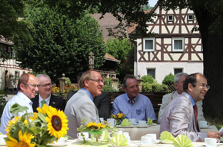 Nun dürften rund 320.000 Euro in die Maßnahmen insgesamt geflossen sein, wobei die Förderung aus Bundes-, Landes- und EU-Mitteln 45 Prozent beträgt und die Stadt Bad Staffelstein den anderen Teil schultern muss. Anton Hepple, der Leiter des Amtes für Ländliche Entwicklung Oberfranken, der mit dem Verantwortlichen für die Dorf- und Flurentwicklung, Walter Nüßlein, nach Horsdorf gekommen war, sicherte eine rasche Auszahlung der Gelder zu, sobald die Schlussabrechnung vorliegt. Er nannte die Horsdorfer Glückskinder, weil sie in einem so schönen Ort und so schöner Umgebung wohnen dürfen - und weil ihnen zu dieser Feier nach einer verregneten Woche strahlender Sonnenschein beschert war. Wie gut alles gelungen sei, davon habe er sich beim Rundgang überzeugen können, betonte Hepple.