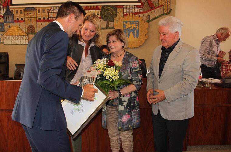Von Freude sprach der Geehrte auch selbst. Es sei eine Freude, in diesem Stadtrat mitzuarbeiten und ein Geschenk, so lange dabei sein zu dürfen. Freilich spüre er das Alter, "speziell in Hüfte und Kniegelenk", sagte er mit einem Schmunzeln, zugleich unterstrich er seine anhaltende Begeisterung für die Aufgaben: "Unser Bürgermeister hat mich noch mal total herumgerissen." Zudem habe er "die beste Sekretärin der Stadt" an seiner Seite, seine Frau Sieglinde habe seine Termine immer mit im Blick. Für sie gab es Blumen und ein Präsent.