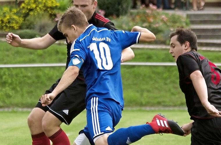 FV Mistelfeld 1:1Das Stadtderby lebte fast nur vom Kampf. Zwangsläufig war spielerisch von beiden Teams nicht viel zu sehen. Die "Siedler" begannen stark und hatten bereits in der zweiten Minute eine Riesenmöglichkeit durch Hagel. Allein lief er auf das gegnerische Tor zu, scheiterte aber am guten Mistelfelder Schlussmann Böhmer. Wenig später brachte aber Hagel per Kopf seine Mannschaft in Führung (3.). Die einsatzfreudigen Gäste hielten voll dagegen, hatten in der achten Minute einen Pfostenschuss und kamen in der zehnten Minute durch Gierlich zum Ausgleich. Chancen zur Führung hatten in der Folge beide Mannschaften.
