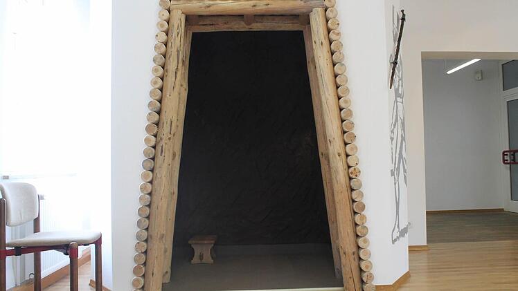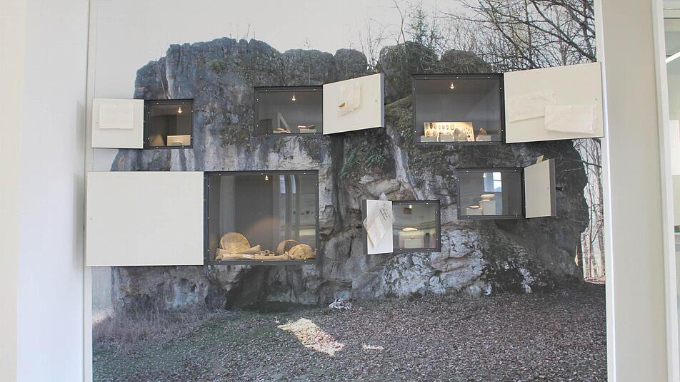 Eine große Landkarte zeigt die bisher bekannten Fundstellen steinzeitlicher Kulturen in der Umgebung des Staffelbergs. Eine besonders kreative Idee ist eine große Fotowand des "Hohlen Steins bei Schwabthal", einem bedeutenden Ritual- und Siedlungsplatz der Jungsteinzeit.