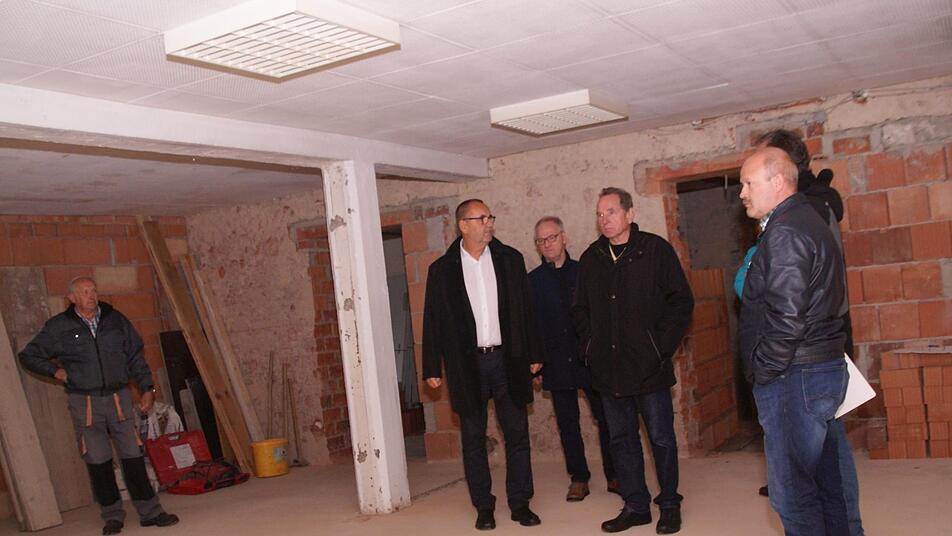 Bei der Ortsbesichtigung im Vorfeld der Bauausschusssitzung zeigten sich die Gremiumsmitglieder zufrieden mit dem Fortschritt der Maßnahme. Arbeiter waren bei Nieselregen fleißig zugange. Stadtbaumeister Andreas Ender ging auf das umfangreiche Projekt im Rahmen der Dorferneuerung ein.