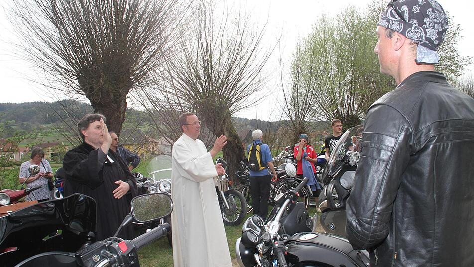 In der Lederkombi zum Gottesdienst? Das geht prima, zumindest beim Motorradgottesdienst in Stublang. Geprägt von einer ganz besonderen Stimmung zieht der ökumenische Motorradgottesdienst am Fuße des Staffelbergs zum Saisonauftakt Jahr für Jahr mehr Motorradfahrer an. In diesem Jahr tat das Wetter ein Übriges. Bei milden Temperaturen und Sonnenschein holten sich weit mehr als 300 Biker zur Eröffnung der Saison Gottes Segen und das bereits zum neunten Mal. Dabei sind viele nicht zum ersten Mal gekommen. Auch wenn es erst das dritte Mal ist, dass Michael Thomas den Weg in den Lautergrund genommen hat, dieses Mal hat der Biker aus dem Landkreis Erlangen-Höchstadt noch einen weiteren Grund. "Ich habe kurz vor meiner Abfahrt erfahren, dass mein Bruder mit einem Motorradunfall im Krankenhaus liegt", berichtet der Adelsdorfer. Schon deshalb ist ihn der Segen Gottes wichtig.