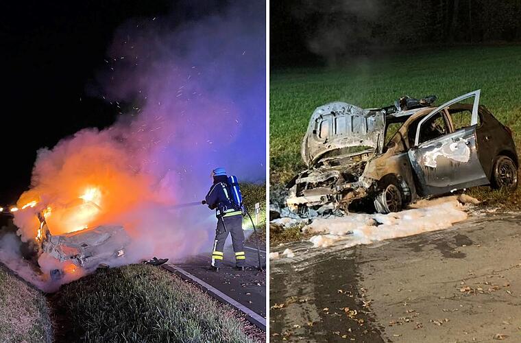 - Wagen brennt lichterloh - 20 Feuerwehr-Kräfte im Einsatz