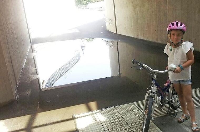 In der neuen Bahnunterführung steht zum Ärger der Benutzer tagelang das Wasser.