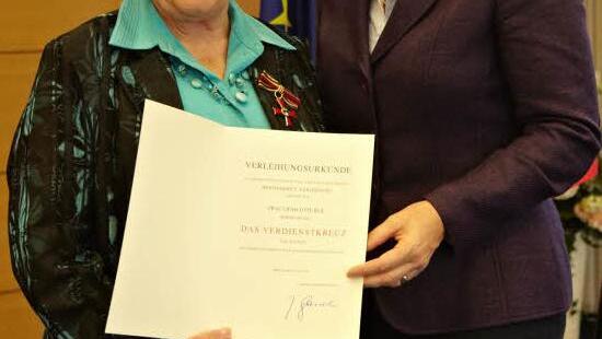 Trotz aller Mühen - im Großen und Ganzen würde Lieselotte Ruß alles genau so wieder machen. Jetzt hat sie in München das Bundesverdienstkreuz am Bande des Verdienstordens der Bundesrepublik Deutschland sowie die Bayerische Staatsmedaille für soziale Verdienste erhalten. "Viele Frauen der älteren Generation werden bei der Angabe ihres Berufsstandes Hausfrau oft belächelt", heißt es in der Laudatio. "Sie persönlich geben ein Beispiel, wie viel Tatkraft und Energie hinter diesem Begriff steckt", betonte Bayerns Sozialministerin, Christine Haderthauer. Lieselotte Ruß war sehr gerührt über diese hohe Auszeichnung.