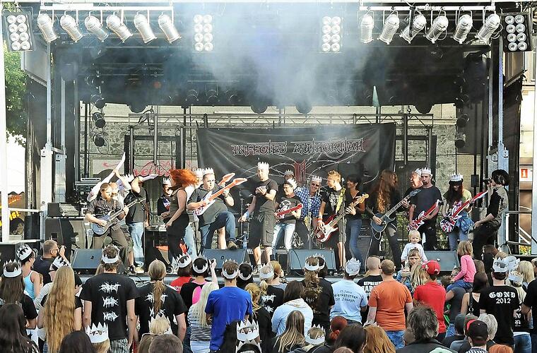 Der Himmel meinte es gut mit dem Kreisjugendfest. Zahlreiche Besucher erlebten ein Fest, das den vielen Besuchern einen Einblick in die Angebotsvielfalt heimischer Vereine und Verbände gab. Der Himmel meinte es gut mit dem Kreisjugendfest. Und Stefan Beier von CFB, der zu den Mitorganisatoren gehörte, musste den Marktplatz danach nicht allein fegen. Denn er holte zehn Mitstreiter auf die Bühne, die mit ihm am frühen Abend "Highway to hell" mit der Luftgitarre spielten - und so bekam der Kreisjugendring 500 Euro für seine Projekte aus Mitteln von "Franken helfen Franken", der Spendenorganisation der Mediengruppe Oberfranken.