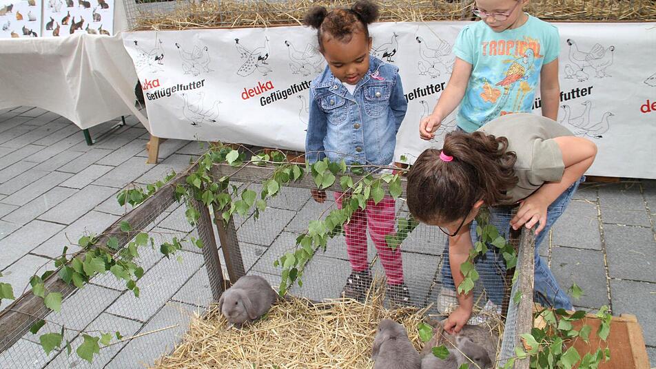 "Es gibt Jugendgruppen, die mit Tieren verbunden sind", erklärt Anne Fischer vom Kleintierzuchtverein Hochstadt. Sachsengold heißt eine Kaninchenrasse, eine andere Mecklenburger Schecke. Es sind beileibe nicht nur Kinder und Jugendliche, die vor den transportablen Kaninchenställen stehenbleiben. "Auch viele Erwachsene sind an unseren Angebot interessiert", berichtet Anne Fischer, die gleichzeitig stellvertretende Kreisjugendleiterin ist. Immer wieder muss sie eines der Kaninchen aus der Umzäunung holen, damit ein Kleinkind es streicheln kann. Einige Meter weiter hat der "Treffpunkt Hund" Michelau seinen Parcours aufgebaut. Die Hundefreunde zeigen einen Ausschnitt aus ihrer Vereinsarbeit.