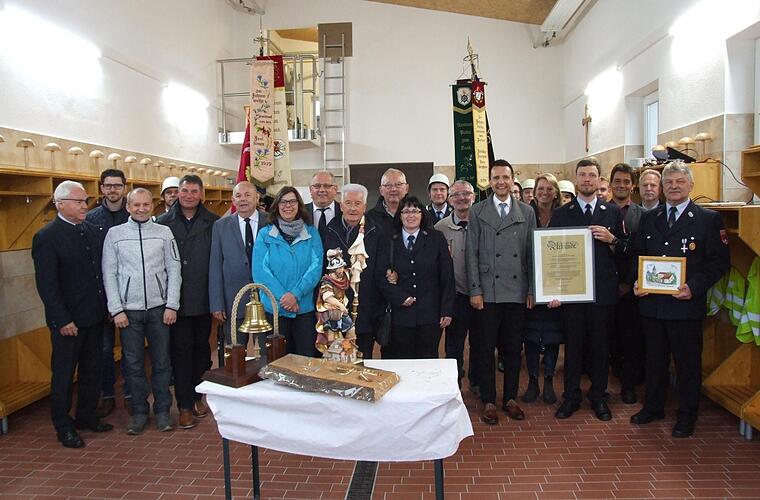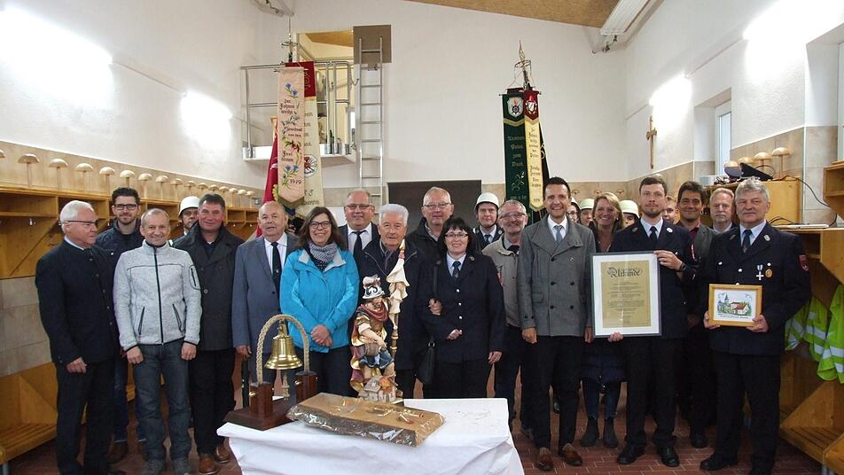 Kreisbrandinspektor Hermann Schuberth erwähnte, dass insgesamt 15 Jahre vergingen zwischen dem Wunsch, Beantragung und Fertigstellung dieses Gebäude: "Nun ist es auch wichtig, dass ihr ein Fahrzeug erhaltet, um die Höhe des Tores in der Fahrzeughalle auch ausnutzen zu können."