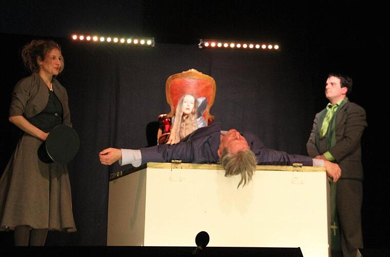 Von Geldgier und Doppelmoral in einer Kleinstadt handelt "Der Besuch der alten Dame". Das Fränkische Theater Schloss Massbach benötigt dafür in Lichtenfels nur fünf Schauspieler. Und ein Sarg steht im Mittelpunkt.
