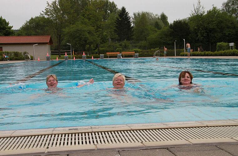 Die Freude an der Arbeit wiegt das auf. Der junge Mann hat gern Kontakt zu den Besuchern, und hier kennt er viele schon länger, denn in Redwitz gibt es etliche Dauerkartennutzer. Da runter ist auch Anni Fischer aus Hochstadt. Die 59-Jährige zieht bei jedem Wetter im Freibecken ihre Bahnen, und das seit über 20 Jahren. Wir treffen sie, als sie nach der Arbeit im Büro mit zwei Sportsfreundinnen ins Freibecken steigt. Es ist kein ausgesprochenes Badewetter, bewölkt, um die 20 Grad.