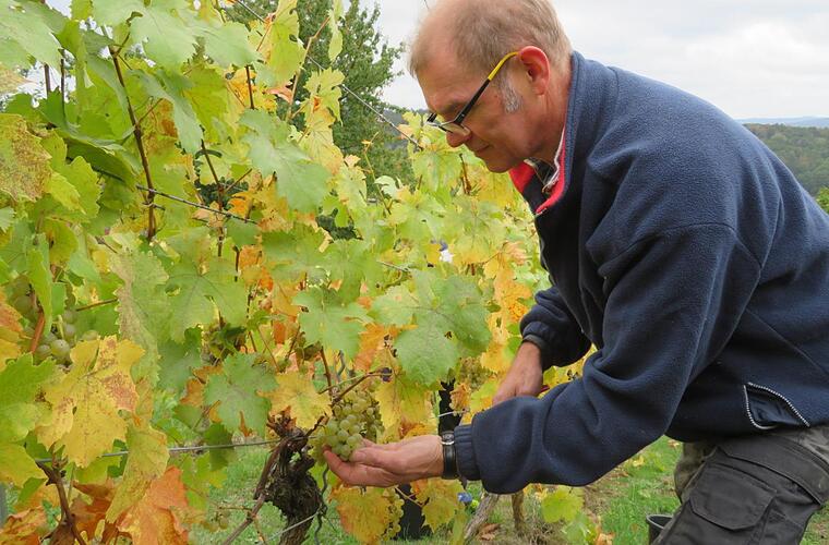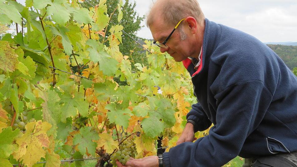 Dort stehen die einzige Weinreben im Landkreis Lichtenfels. Mit der Ernte ist Winzer Jürgen Schneidawind zufrieden.