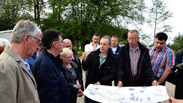 Nach ihren Beratungen fanden sich die Mitglieder des Stadtrats noch zu einem Ortstermin im Bereich Hutzelbrunnen mit der bauausführenden Firma Dietz und dem Ingenieurbüro IBP zusammen, wobei vor allem die Verlegung der Versorgungsleitungen, insbesondere der Wasser- und Abwasser, die Thema waren. Sie gestaltet sich wegen der teilweise eingeengten Möglichkeiten mitunter als recht schwierig und arbeitsaufwendig. Jedenfalls erwies sich diese Inaugenscheinnahme für alle, wie es Bürgermeister Udo Dauer zusammenfasste, für anstehende Entscheidungen als sehr nutzbringend.