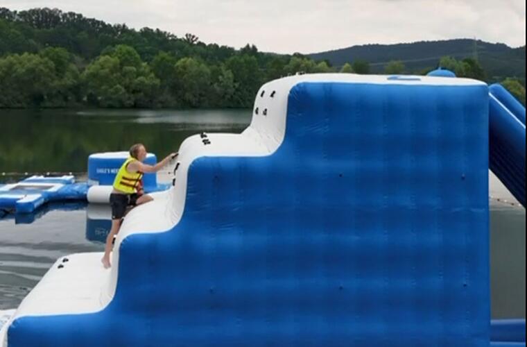 In Bad Staffelstein hat eine neue Attraktion für Besucher des Badesees eröffnet. Ein aufblasbarer Wasserpark steht täglich zur Verfügung.