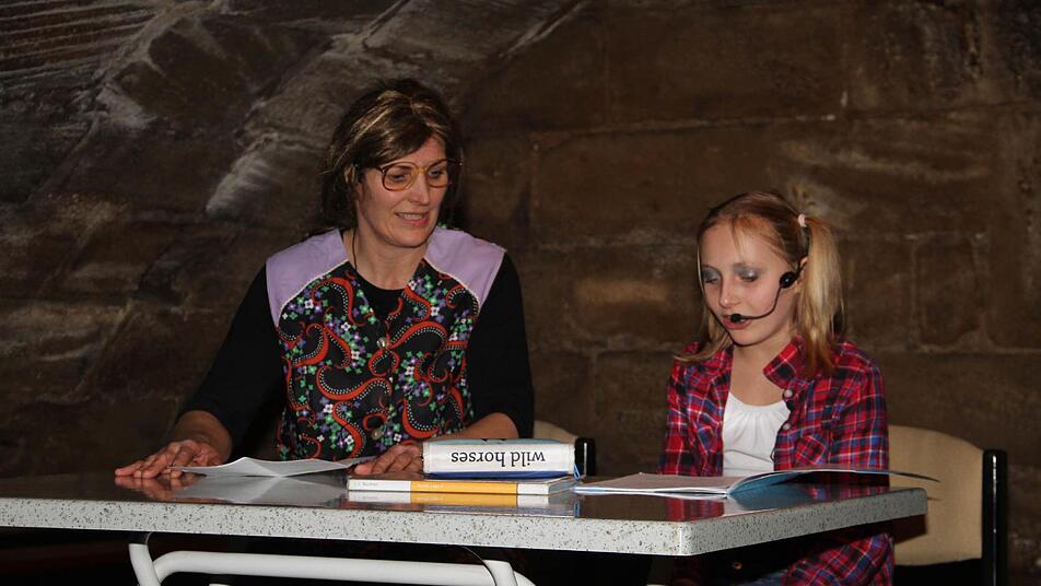 Birgit Bräutigam und Töchterchen Anne plauderten aus dem Familienalltag. So erfuhr das Publikum, das s Annes Papa sich die Fußnägel schneiden kann, ohne dabei die Socken ausziehen zu müssen. Richtig kompliziert für das Mutter- Tochter-Gespann wurde die Lösung einer Rechenaufgabe. Bei der Frage, wieviel 28 durch 7 ist, wurde so manche Eselsbrücke geschlagen. Beispielsweise, dass sieben Zwerge eine 28-Zimmer-Wohnung bewohnen. Doch halt, in ganz Weismain gibt es keine 28-Zimmer-Wohnung und keine sieben Zwerge. Schließlich kam das Mutter-Tochter-Gespann auf die Idee, die Rechnung mit Torten aufzumachen. Also beschloss man, 28 Torten bei einer stadtbekannten Konditorei zu holen und sich mangels eigener Familienmitglieder noch weitere Gäste einzuladen. Danach stellte sich allerdings die Frage, ob jeder vier Torten auch schaffen kann.