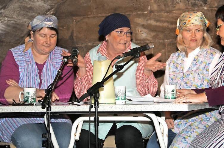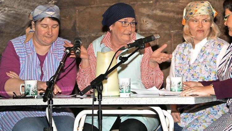 Mit Kopftuch und Kittelschürze trafen sich die Schützendamen zu einem ausgiebigen Kaffeekränzchen. Beim Thema Männer mögen manchem Ehemann die Ohren geklungen haben. Aber wie die Damen mehrfach feststellten, sie sind ja clever und lassen sich nichts vormachen.