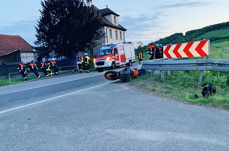 17-jähriger Biker bei Unfall schwer verletzt: Bei seiner Fahrt am Freitagabend (08.05.2020) von Arnstein in Richtung Karlstadt prallte ein 17-jähriger Motorradfahrer gegen eine Leitplanke. Er verlor am Beginn der sogenannten "Marbacher Kurve" die Kontrolle über sein Fahrzeug und stürzte daraufhin. Der KTM-Fahrer verletzte sich schwer und wurde nach ersten medizinischen Versorgungen vor Ort mit einem Hubschrauber in ein Würzburger Krankenhaus gebracht.