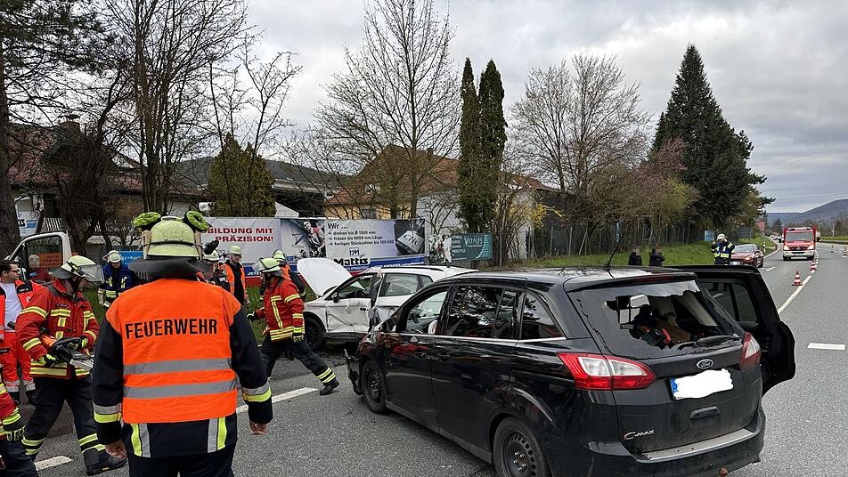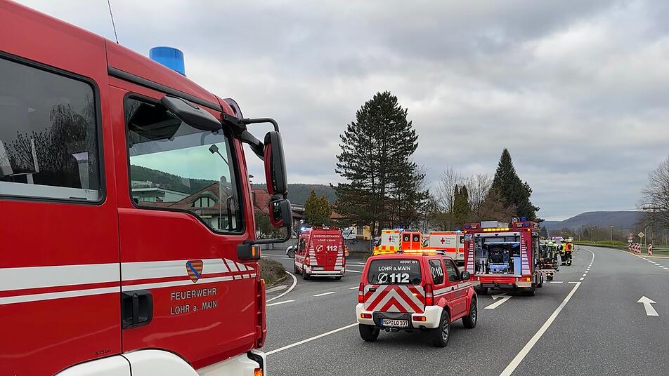 In Lohr am Main musste die Feuerwehr am Sonntagabend (2. April 2023) eine Person aus einem Auto befreien. Nach einem Unfall wurde die B26 voll gesperrt.