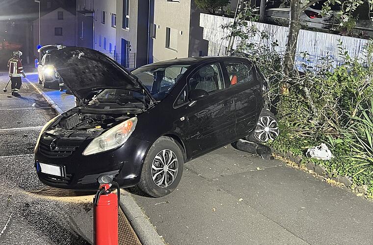 Im Kreis Main-Spessart fuhr ein Auto rückwärts gegen eine Laterne und einen Baum. Die Feuerwehr fand ein Trümmerfeld vor.