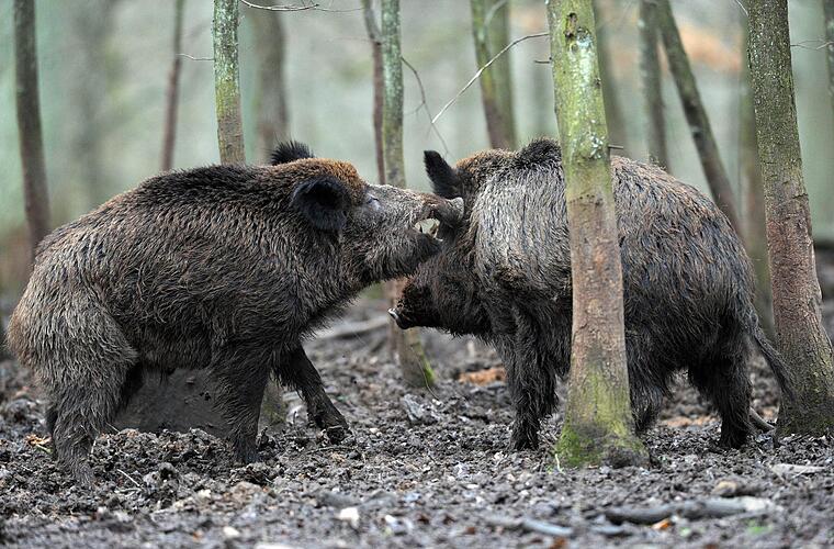 Tierisch in Bedrängnis gerieten zwei Wanderer am Mittwochabend im Wald bei Hafenlohr im Kreis Main-Spessart. Als sie von einer Rotte Wildschweine umringt wurden, retteten sie sich auf einen Holzstoß. Eine Streife der Marktheidenfelder Polizei rückte an und "befreite" das Paar aus seiner misslichen Lage.
