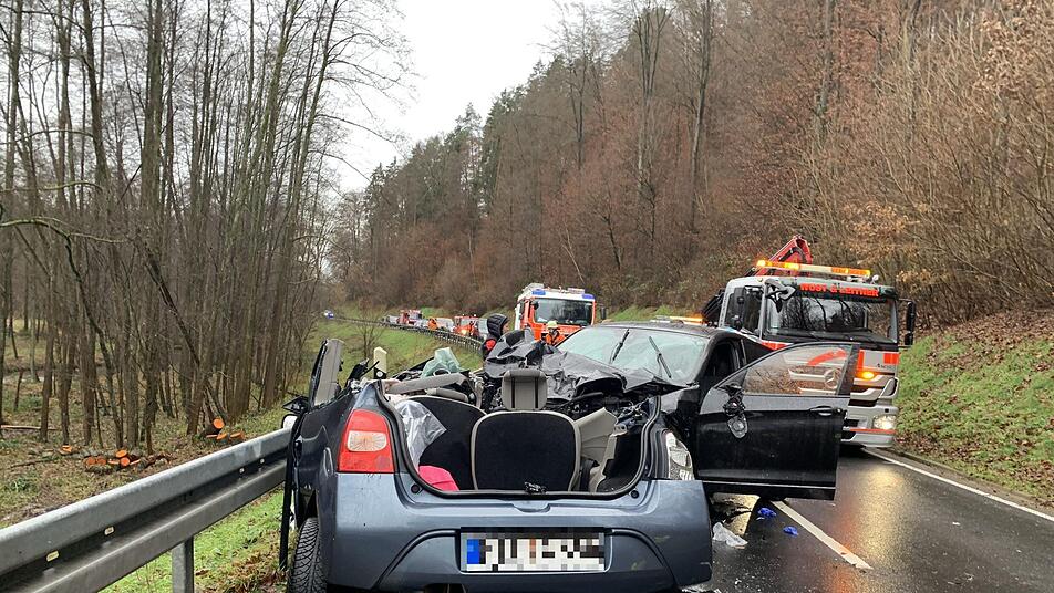 Am Sonntag krachten in Unterfranken zwei Autos frontal ineinander. Eine Frau starb noch am Unfallort - ein 27-Jähriger kam schwer verletzt in ein Krankenhaus.