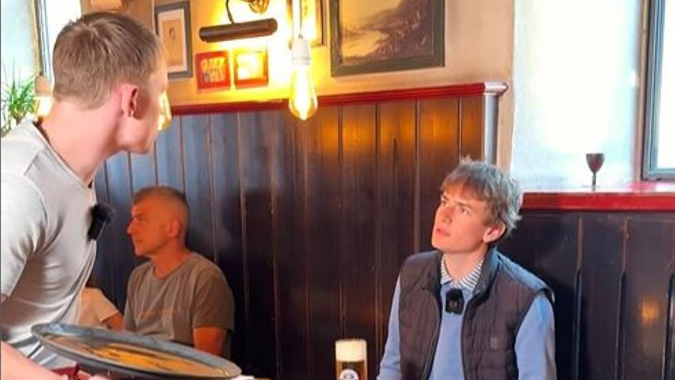 Die besagten Aufnahmen aus Miltenberg zeigen eine Art Sketch, in dem es um das WLAN-Passwort des Lokals geht. Allein auf Instagram haben bereits rund 1,3 Millionen Menschen das Scherzvideo gesehen. Die Internetnutzer zeigen sich in den Kommentaren begeistert von dem Scherz. Das Video zeigt einen Kellner, der im Riesen am Tisch eines Gastes vorbeigeht. Der Gast fragt diesen nach dem WLAN-Passwort, woraufhin der Kellner antwortet: "Sie müssen erst ein Bier bestellen."