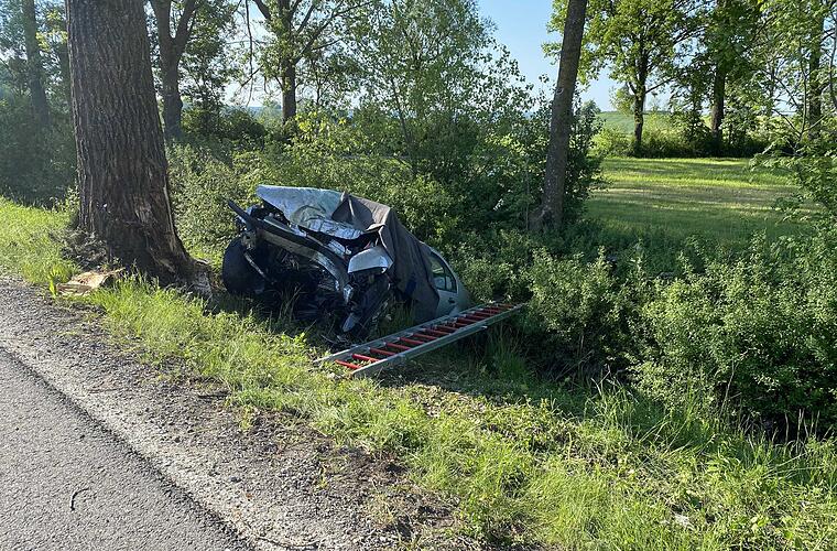 Zwischen Berolzheim und Kaubenheim: 19-jähriger Autofahrer prallt frontal gegen Baum - Unfallursache unklar