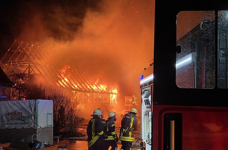 Die Brandbekämpfung musste demnach von zwei Seiten durchgeführt werden - sowohl von der Straßenseite als auch über das Gewerbegebiet. "Die Scheune war im Vollbrand bei Eintreffen der Feuerwehr. Aber die Feuerwehren konnten verhindern, dass die Flammen auf nebenstehende Gebäude übergegriffen haben", berichtete der Pressesprecher.
