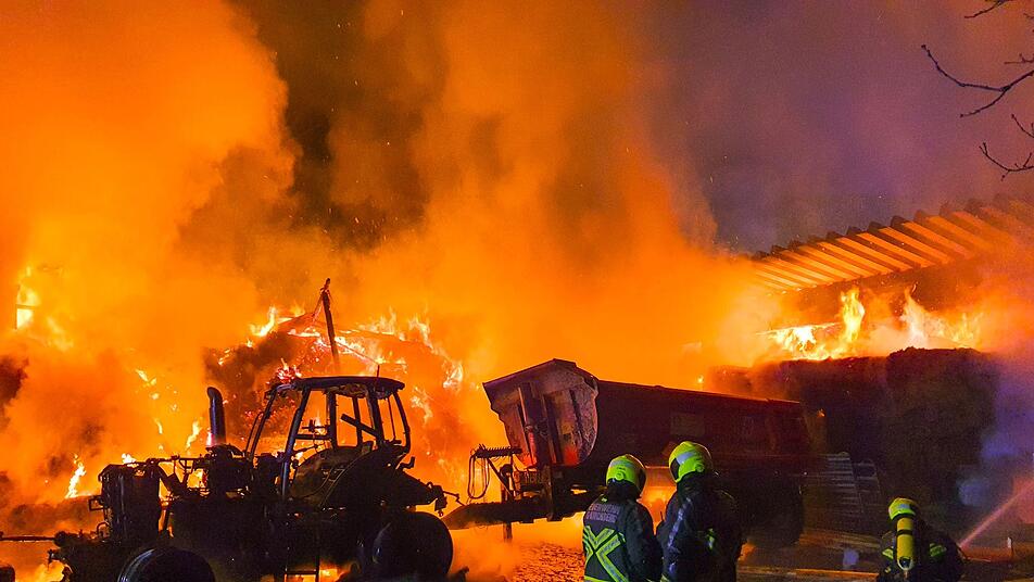 Ursache für den Scheunenbrand sei offensichtlich ein brennender Traktor gewesen, der laut Polizei unmittelbar neben der Scheune abgestellt war. "Die Flammen griffen in der Folge auf einen Teil der Tierscheune über, wodurch zwei Kühe verletzt wurden. Einsatzkräfte der umliegenden Feuerwehren gelang es sowohl den brennenden Traktor als auch die Scheune zu löschen. Personen kamen bei dem Feuer nicht zu Schaden", heißt es im Bericht.