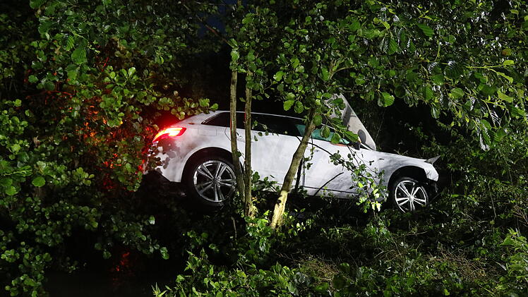 Erstmeldung vom 17.07.2020, 8.48 Uhr: Nächtlicher Unfall in Franken - Auto donnert Böschung hinab und landet in Bach