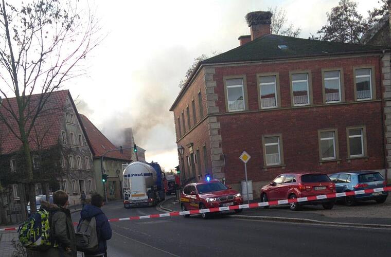 Wie die Polizei mitteilt, alarmierten Zeugen gegen 13.30 Uhr die Einsatzzentrale. In der Hauptstraße sei ein Feuer ausgebrochen. Beim Eintreffen der Einsatzkräfte vor Ort war bereits starke Rauchentwicklung festzustellen. Kurze Zeit später stand das Gebäude in Flammen. Die Einsatzkräfte der Freiwilligen Feuerwehren löschten den Brand unter anderem mit Drehleitern.