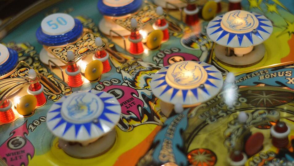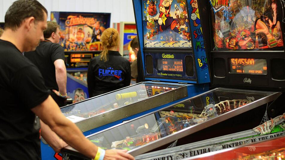 Es blinkt, kracht und scheppert: Bei den Flippermeisterschaften in Nürnberg ist es für die 128 Teilnehmer nicht leicht, die Ruhe zu bewahren. Überall stehen Menschen an Automaten und versuchen, die polierte Silberkugel im Spiel zu halten. "Konzentration und Reaktion ist alles", sagt Klaus Löffler und schießt die Kugel auf die bunte Spielfläche.