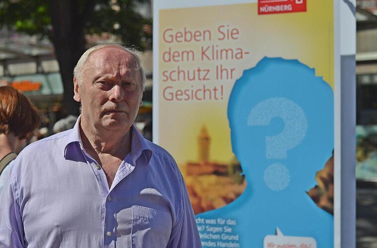 Ein massiver Ausbau der Fernwärme sei jedoch teuer und lasse sich deshalb kurzfristig kaum umsetzen. Pluschke plädiert deshalb für den Bau dezentraler Blockheizkraftwerke. Freilich müsse auch noch der Stadtrat entscheiden, welche Projekte konkret umgesetzt werden sollen. "Ich stelle den Klimafahrplan am Nachmittag im Stadtrat vor", kündigt Pluschke in der Fußgängerzone an, wo die Stadt auch die Bevölkerung auf den Klimawandel vorbereiten will. Bei der Aktion "Wir machen das Klima" können sich Passanten als Klimabotschafter ablichten lassen. Bernd Scheuer macht gerne mit. Unter seinem Foto steht seine Botschaft: "Ich stecke mein ganzes Geld in erneuerbare Energien!" Schon seit 17 Jahren investiere er in Sonnenenergie, um seinen Beitrag zum Klimaschutz zu leisten, erzählt Scheuer.