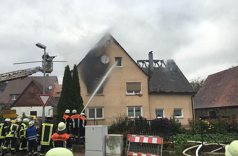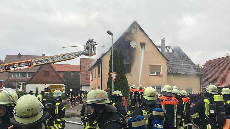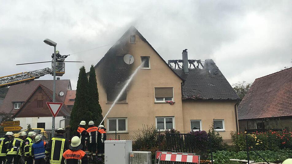 Kurz vor 15:30 Uhr wurden Feuerwehr und Polizei verständigt. Beim Eintreffen der Einsatzkräfte befanden sich die drei Hausbewohner (Ehepaar 62 und 64, Sohn 37) und eine Frau (32) die zu Besuch war bereits im Freien. Die Flammen schlugen aus Fenstern und Dach. Eine starke Rauchentwicklung war weithin sichtbar. Die freiwilligen Feuerwehren aus Altdorf, Winkelhaid, Hegnenberg, Pühlheim, Eismannsberg, Röthenbach bei Altdorf und Rieden waren mit dem Löschen beschäftigt. Ein Übergreifen auf benachbarte Häuser konnte verhindert werden.